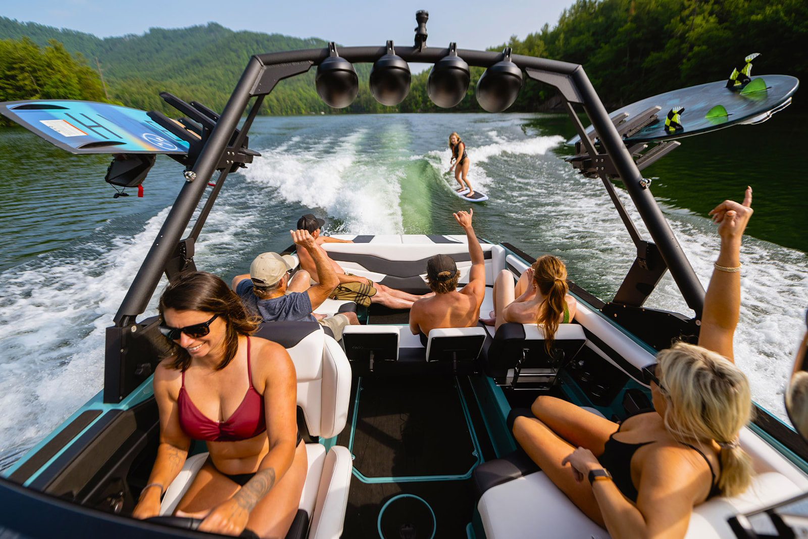 Axisの特徴的なパフォーマンスをバックボーンに作られたT235は、前例のないウェーブメイキング能力と比類ない快適性をバリューパッケージで誇ります。ウェイクボードとウェイクサーフィンのために特別に設計、デザイン、ハンドクラフトされたT235は、サーフゲート®とパワーウェッジ®IIIを採用し、どんなライダーにもいつでも完璧なウォータースポーツの遊び場を提供します。必要不可欠な機能、豊富なシートと収納、大胆なカスタマイズオプションを備えたT235は、クルーが忘れられない夏の冒険に必要なすべてを備えています。ワールドクラスのウェイクやウェーブを作るのに十分なボートを持ちながら、操縦や牽引が簡単なT235は、まさにテクニカルなノックアウト!ウォータースポーツ界で最もお買い得な23フィートボートと言えるでしょう。